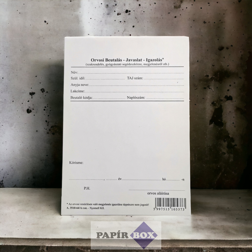 A.3510-64/A Orvosi beutaló, álló, A/6.