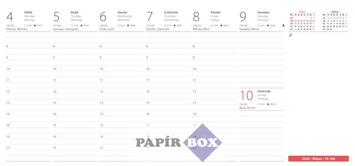 Asztali naptár, 2026., fekvő, DAYLINER, "Oktáv"