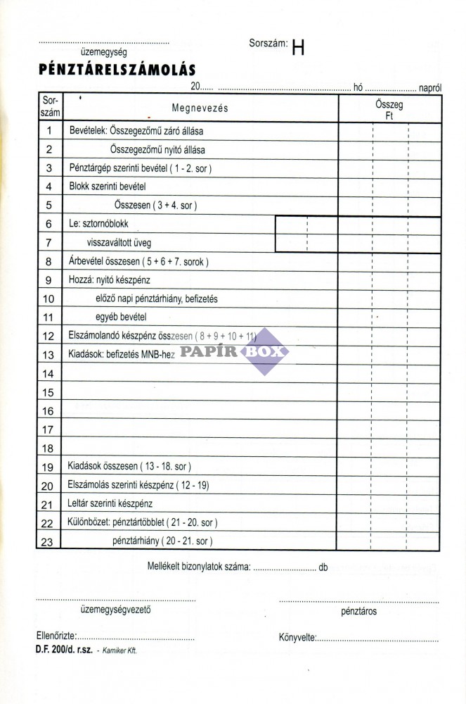 DF-200/d Pénztárelszámolás 25x2 lapos, A/5