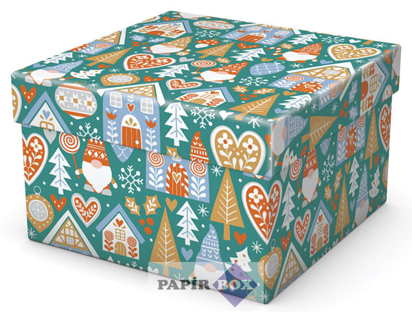 Díszdoboz, N3, Karácsonyi, Mézeskalács, 16x16x12 cm