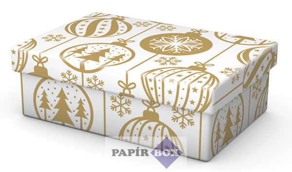 Díszdoboz, T1, Karácsonyi, Arany díszekkel, 12x8x4 cm