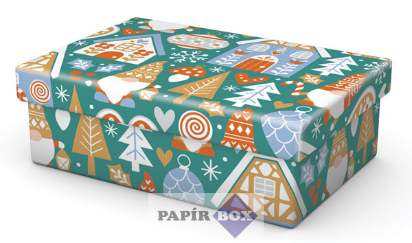 Díszdoboz, T1, Karácsonyi, Mézeskalács, 12x8x4 cm