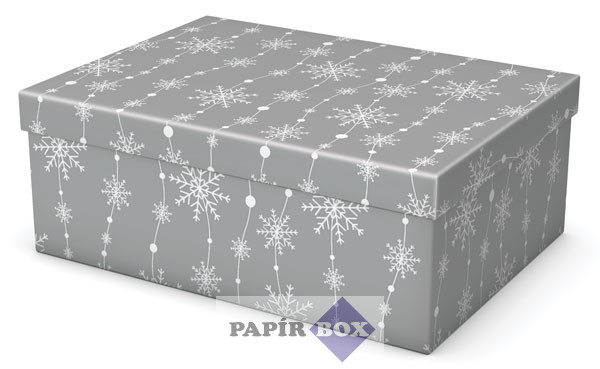 Díszdoboz, T4, Karácsonyi, ezüst, csillagokkal, 32x23x12 cm
