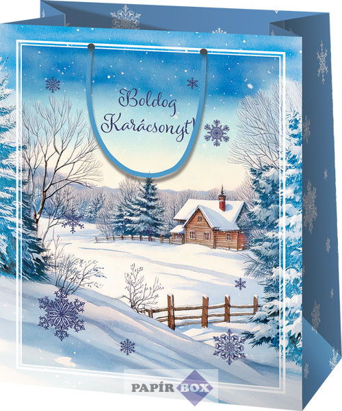 Dísztasak, nagy, karácsonyi, Havas táj házzal