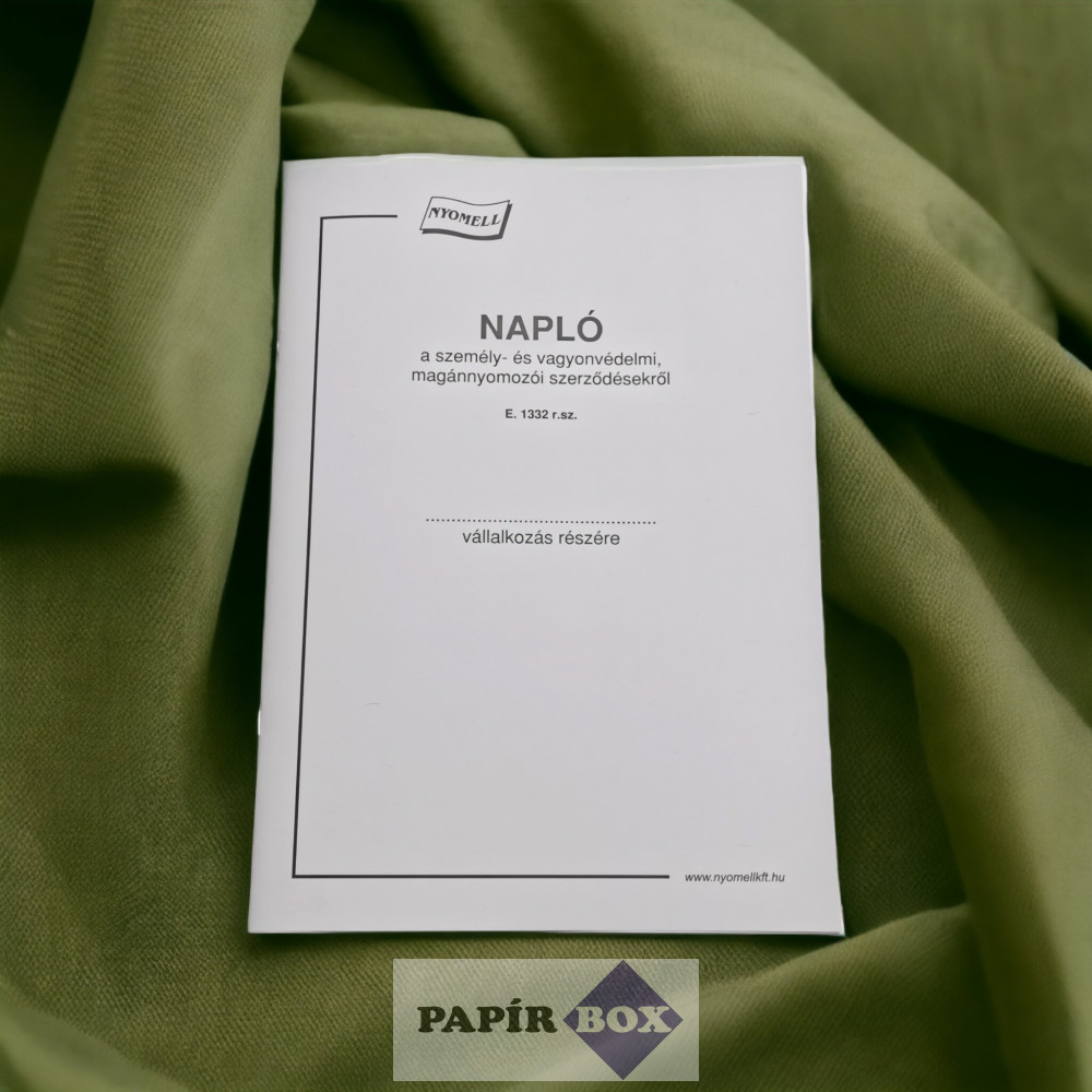 E.1332 Napló Személy - és Vagyonvédelmi, Magánnyomozói Szerződésekről