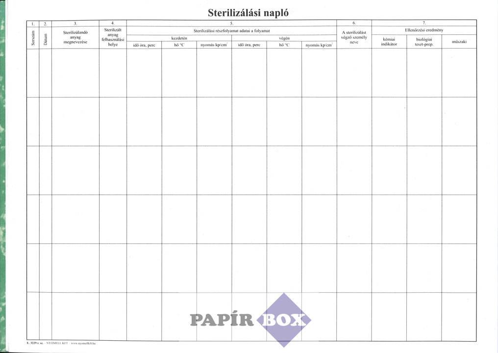 E.3229 Sterilizálási napló, 100 lapos, A/3