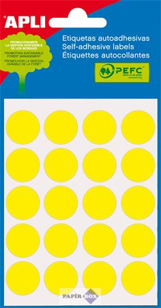 Etikett, 19 mm kör, kézzel írható, színes, APLI, sárga, 100 etikett/csomag