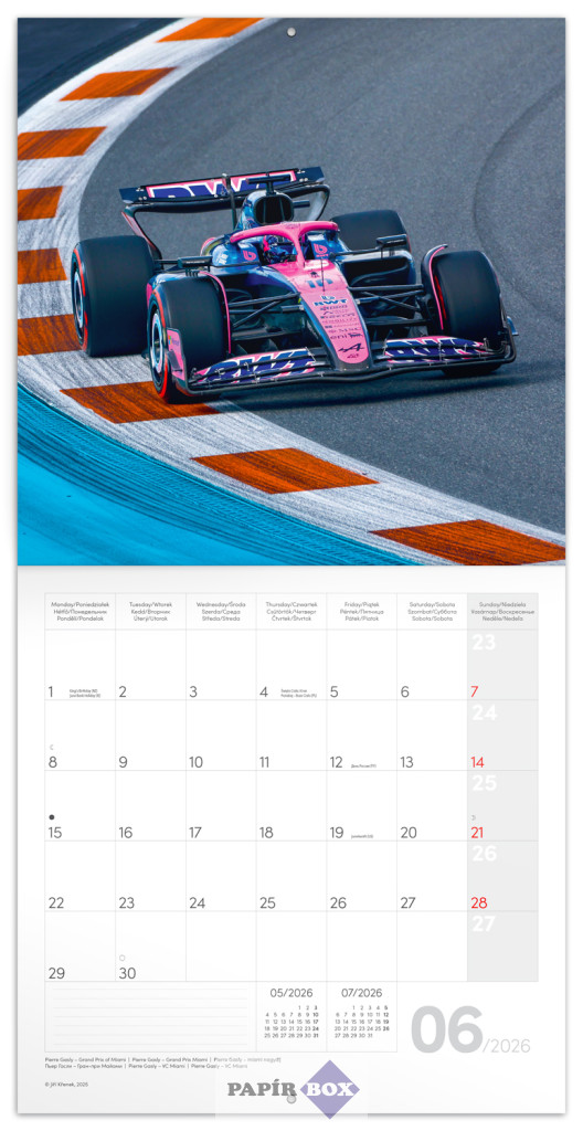 Falinaptár, lemeznaptár, 2026. Formula (Forma 1)