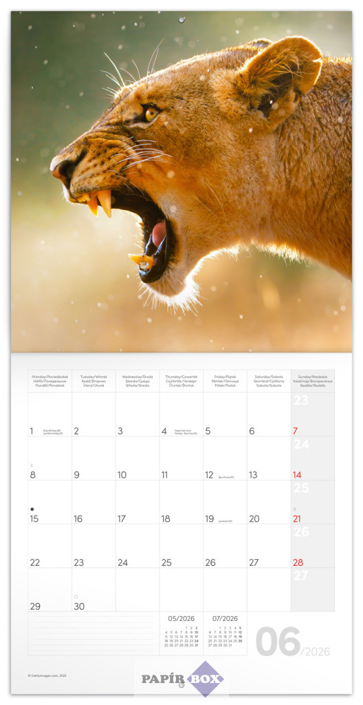 Falinaptár, lemeznaptár, 2026. Vadállatok (Wild animals)
