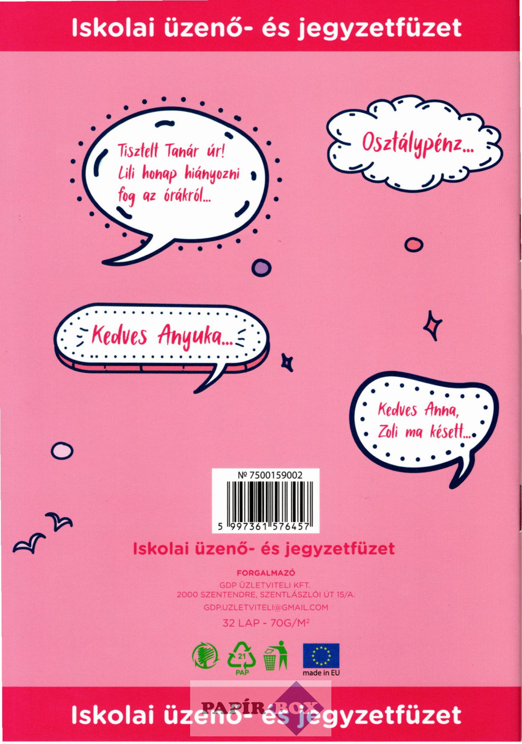 Füzet, tűzött, A/5, üzenő, 32 lap, ICO, rózsaszín