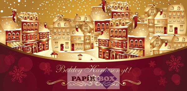 Képeslap, Karácsonyi, többnyelvű, Havas város