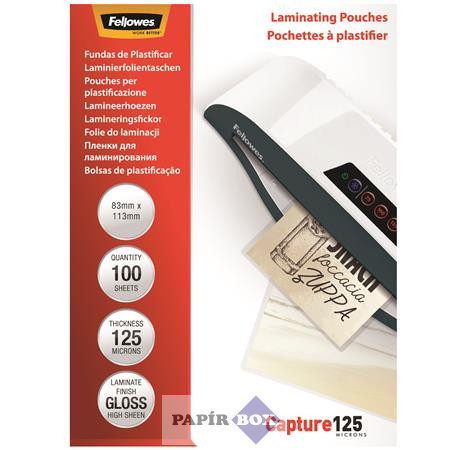 Meleglamináló fólia, 125 mikron, 83x113 mm, fényes, 100 db, FELLOWES