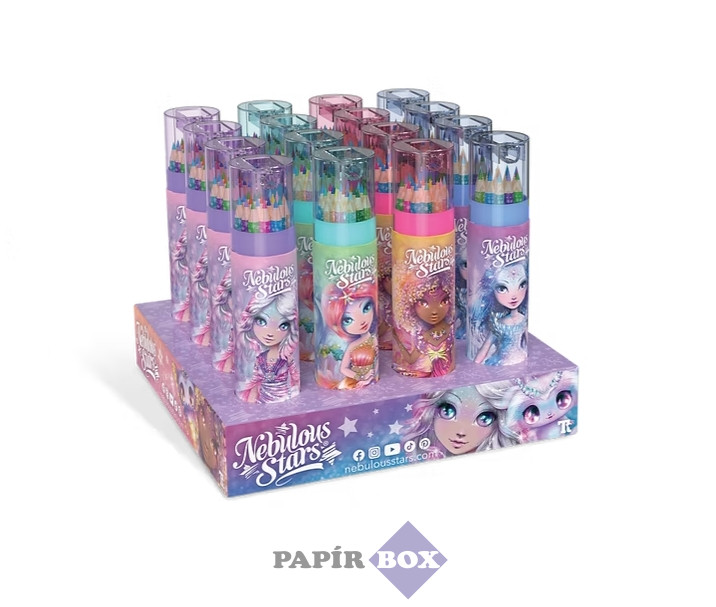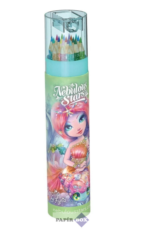 Színes ceruza készlet, 18 db, hengerben, hegyezővel, Nebulous Stars, Coralia
