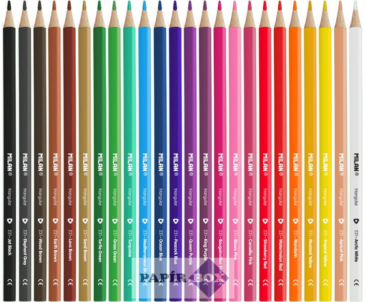 Színes ceruza készlet, háromszögletű, Milan, 24db/klt