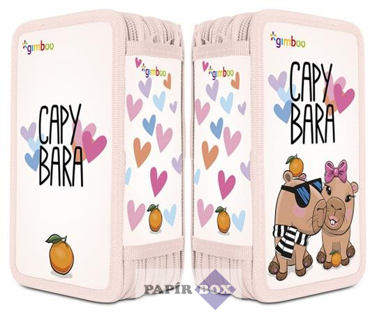 Tolltartó, töltött, 3 emeletes, cipzáras, "Gimboo", rózsaszín, kapibara