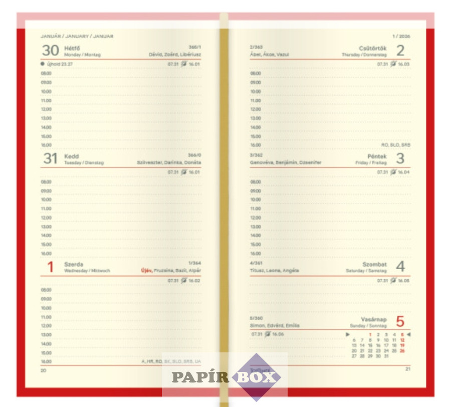 Zsebnaptár, álló elrendezésű, TOPTIMER "Duplex", türkiz-kék