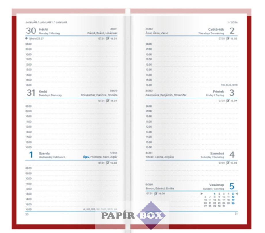 Zsebnaptár, álló elrendezésű, TOPTIMER, "Joy", liliom