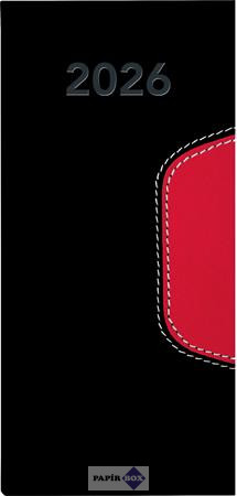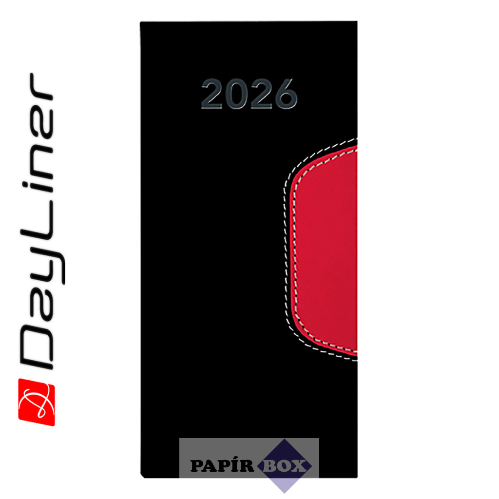 Zsebnaptár, fekvő elrendezésű, DAYLINER, "Memphis", fekete-piros